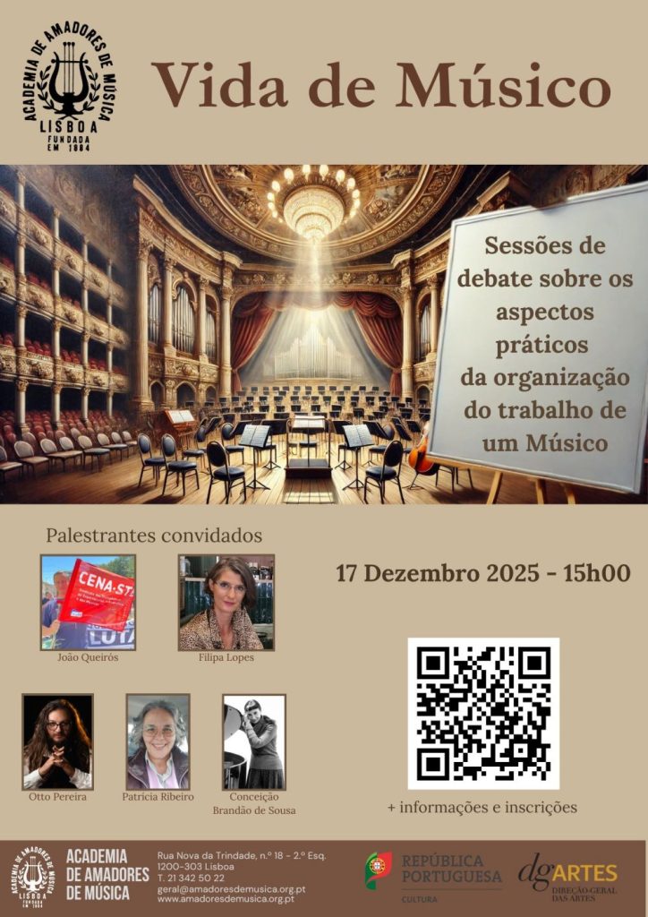A Academia de Amadores de Música reúne um painel de músicos ligados também à produção cultural, ao mundo fiscal e laboral, dentro e fora das principais estruturas culturais no nosso país, de forma a alertar para aspectos fundamentais na vida prática de um artista: como abrir actividade nas Finanças e emitir Recibos Verdes; quais as diferenças entre as diferentes formas de contratação; quais as obrigações perante a Segurança Social; como divulgar e apresentar um projecto junto de uma entidade, são dúvidas comuns para quem ingressa ou já faz parte do mundo do espectáculo, que pretendemos esclarecer nesta sessão.
